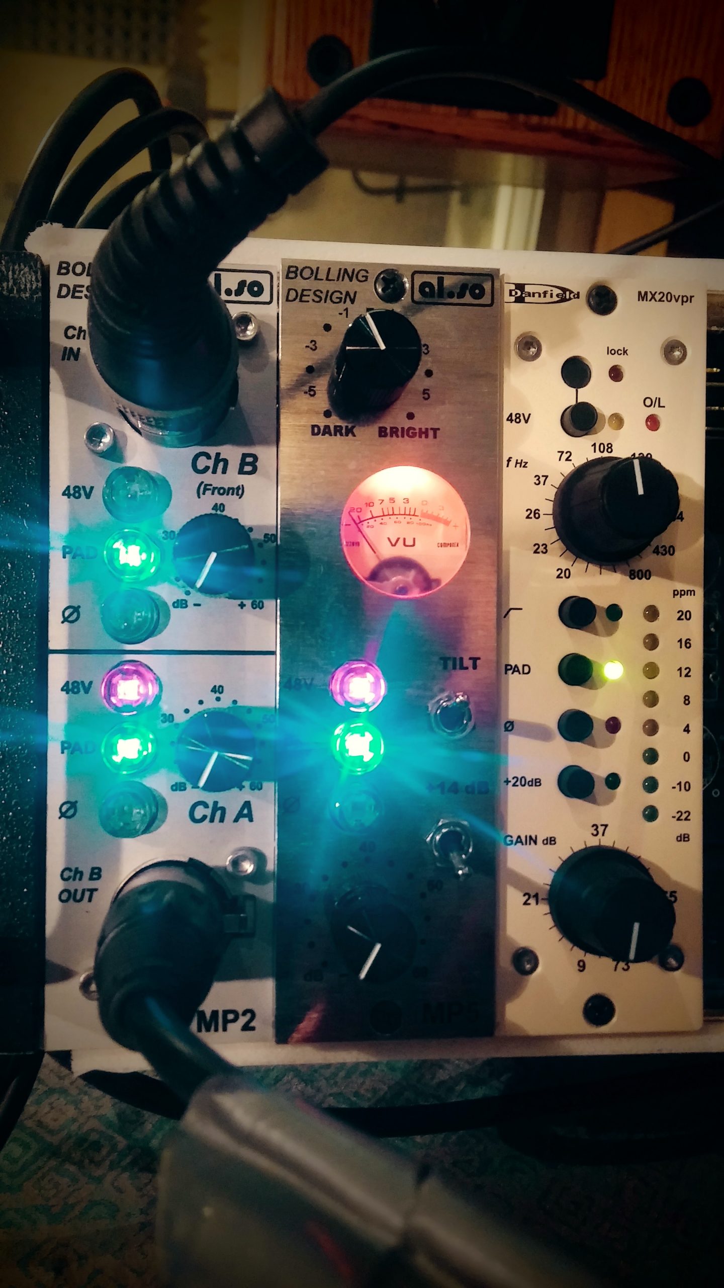 Olivier, dans un premier temps, m’a conseillé et prêté un double pré-ampli al.so MP2, un MP5 et un Danfield pour que je puisse les tester sur les prises de son des Copains de la Lune.