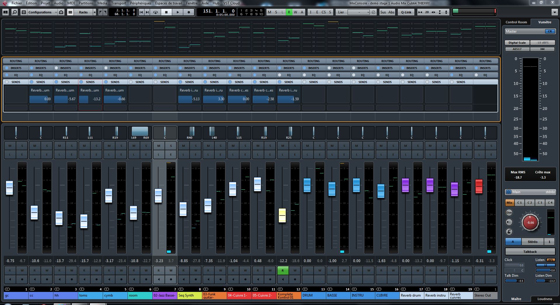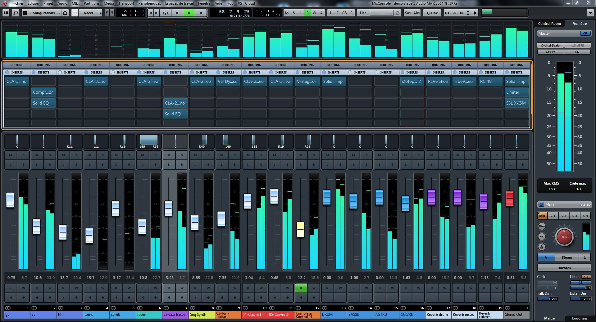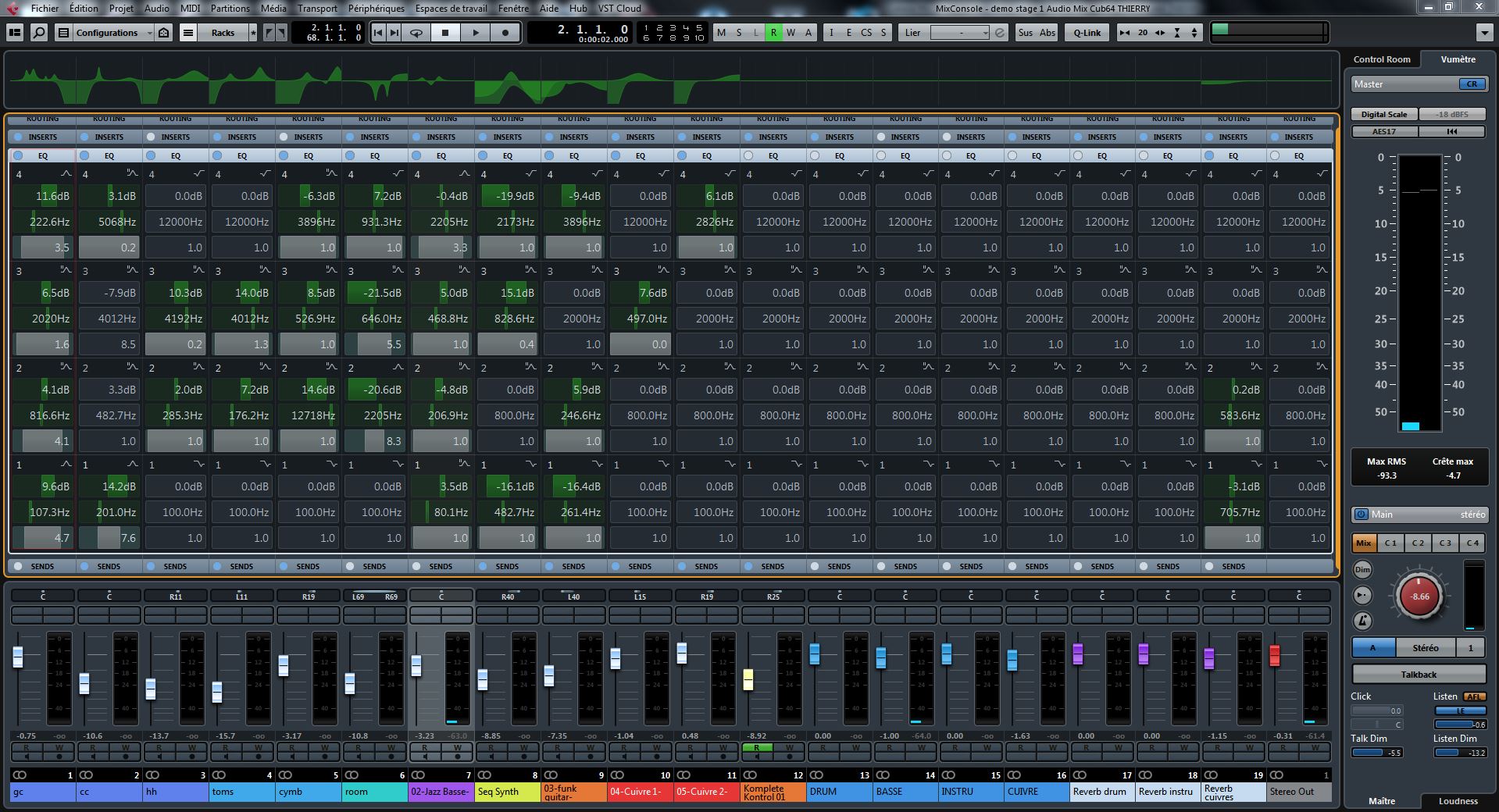 Passons en revue quelques images de la session de mixage, pour vous donner une idée du travail accompli par Thierry Couvidat.